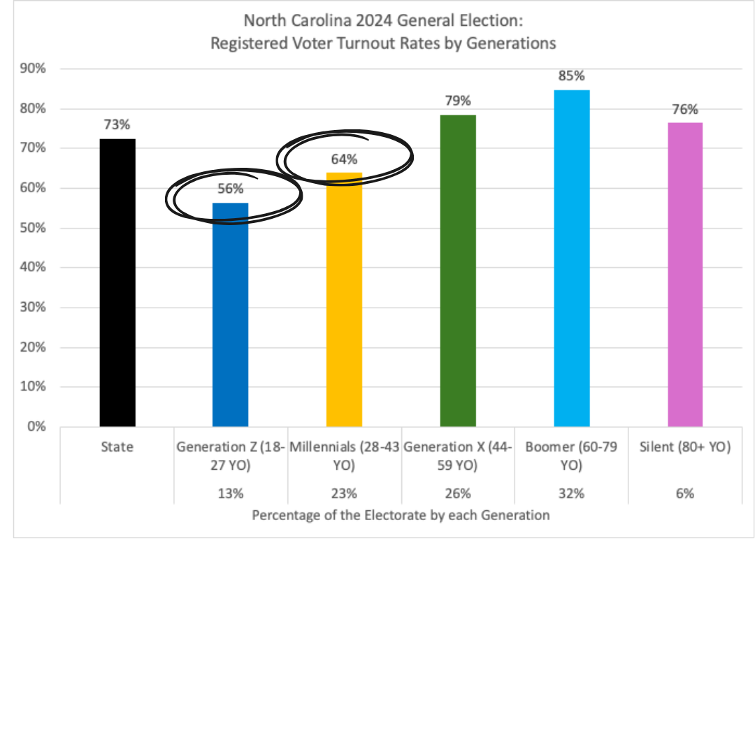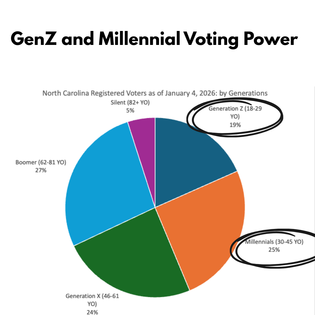 When combined, Gen Z and Millennials are the LARGEST group of registered voters in North Carolina.